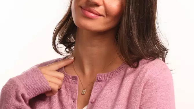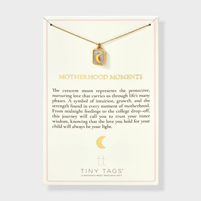 Tiny Tags 14K Gold Ion Plated with Mother of Pearl Inlay Moon Pendant Necklace - Gold