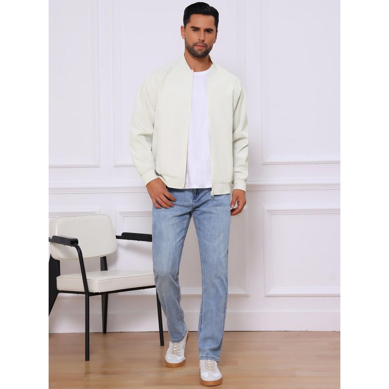 INSPIRE CHIC Men's Casual Stylish Lightweight Full Zip Up Bomber Jacket Large Beige