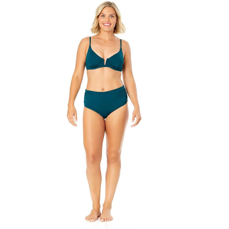 Women's Live In Color V Wire Underwire Bikini Top-Hunter Green-34C/36B