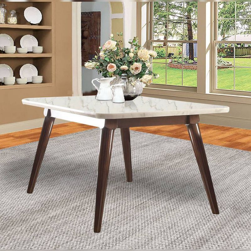 Acme Furniture 64" Gasha Dining Table White Marble/Walnut: Elegant Rectangular Kitchen Table for 6, Wood Base