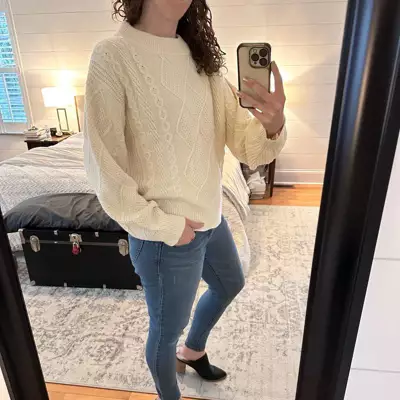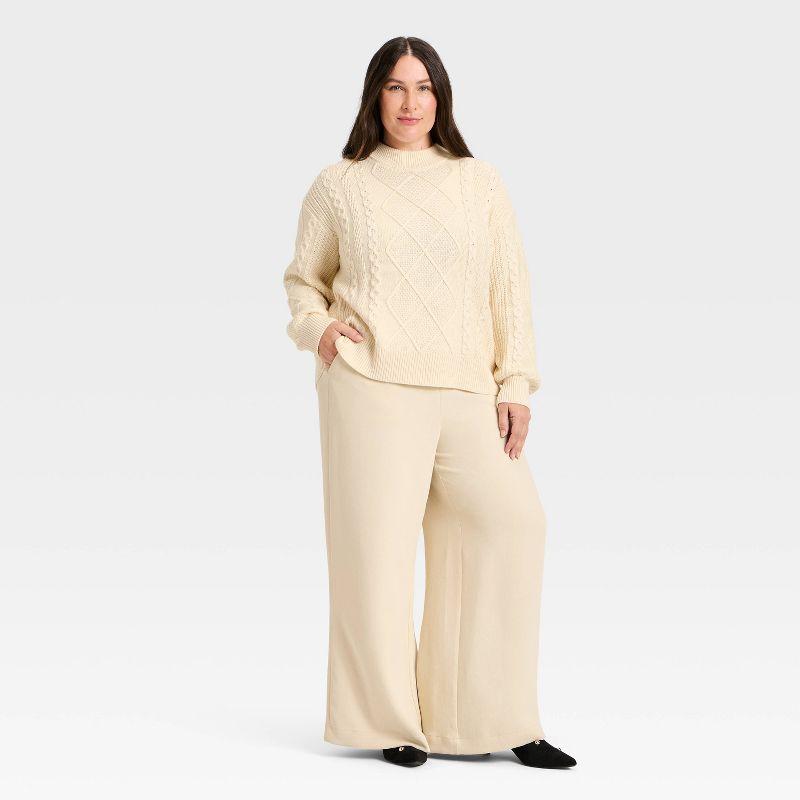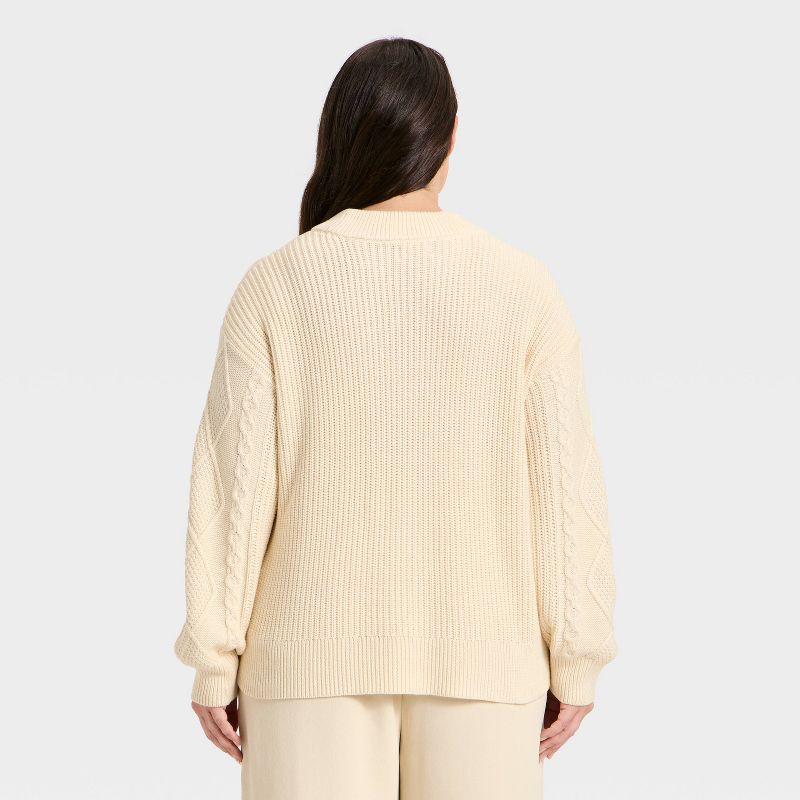 Women's Long Sleeve Cozy Alpine Cable Knit Crewneck Pullover Sweater - Universal Thread™ Cream 2X