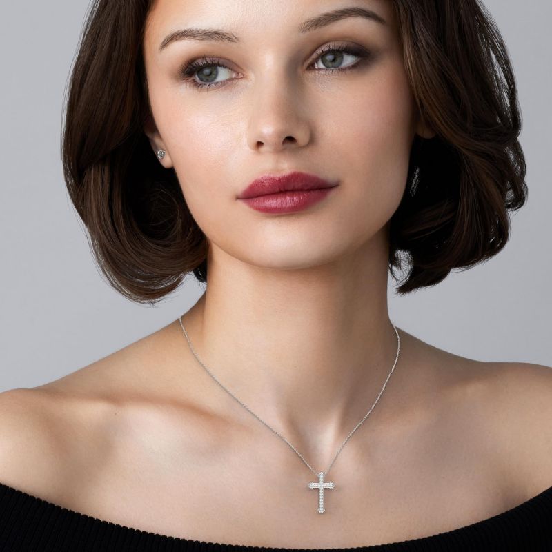 Itsy Bitsy by Gilded 1/4 ct t.w. Lab-Grown Diamond Cross Pendant Necklace in Sterling Silver, 18" Cable Chain