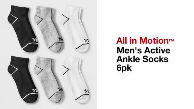 Men's Assorted New Ankle Socks 6pk - All In Motion™ 6-12: Arch Support, Cushioned Heel, Midweight Fabric