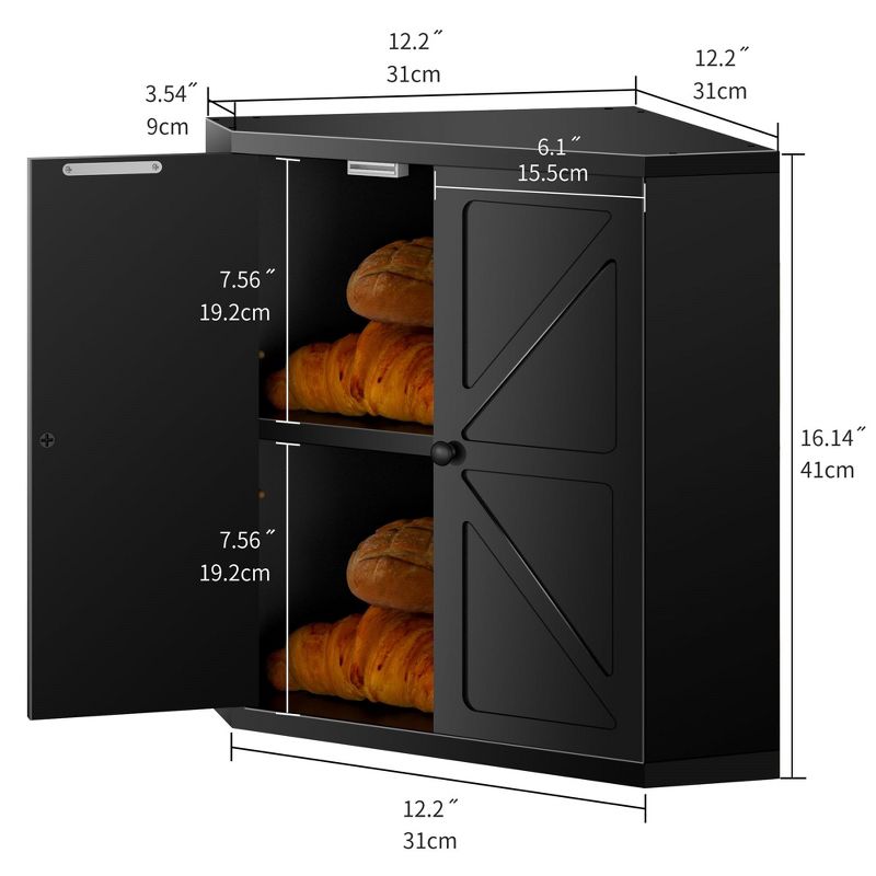 MOEPISY Corner Wooden Bread Box for Kitchen Countertop, Space-Saving Storage for Homemade Bread, Black