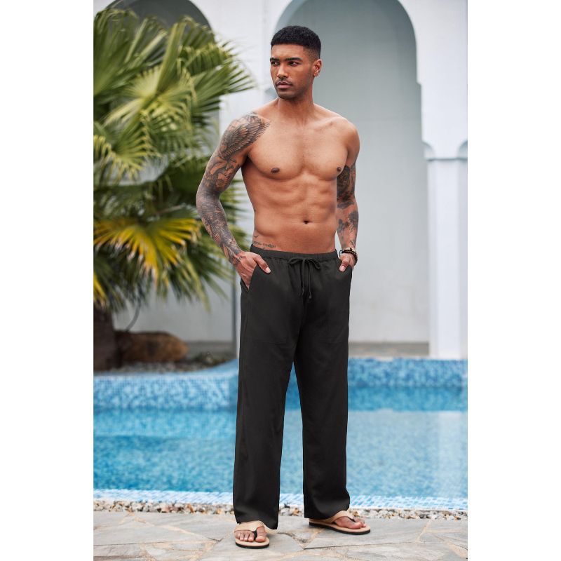COOFANDY Mens Casual Linen Pants Elastic Waist Linen Pants Drawstring Summer Beach Yoga Linen Trouser Khaki S