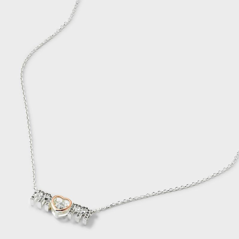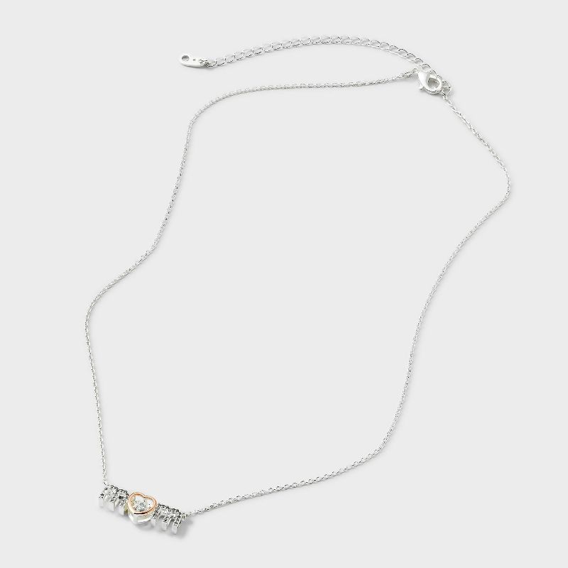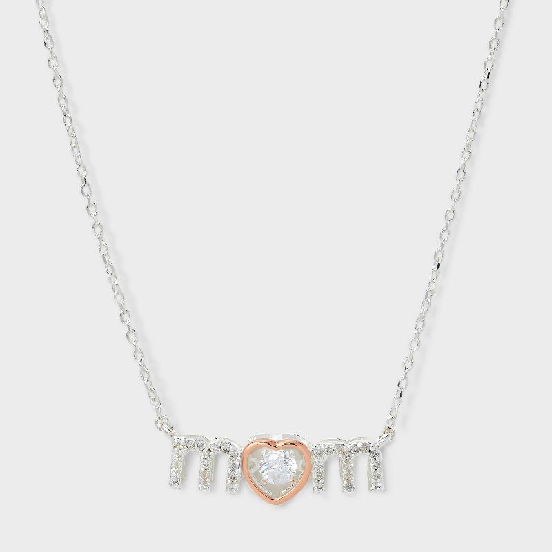 Silver Plated Cubic Zirconia "Mom" Necklace - Silver