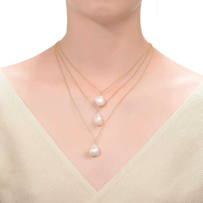 Guili Sterling Silver 14K Yellow Gold Plated Layered Necklace featuring Freshwater Pearls, designed to add elegance to your modern wardrobe.