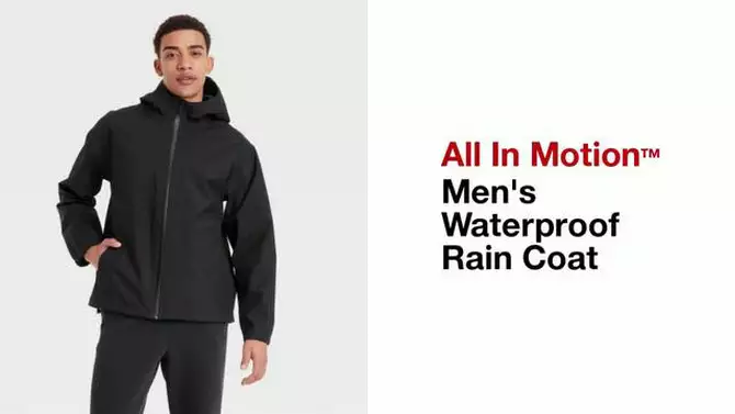 Men's Waterproof Rain Coat - All In Motion™ Black XL: Recycled Polyester, Lightweight, Adjustable Hood