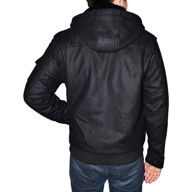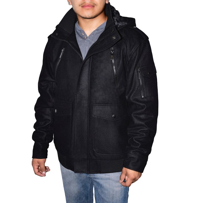 Men's Wool Blend Bomber Hood Jacket Black XL