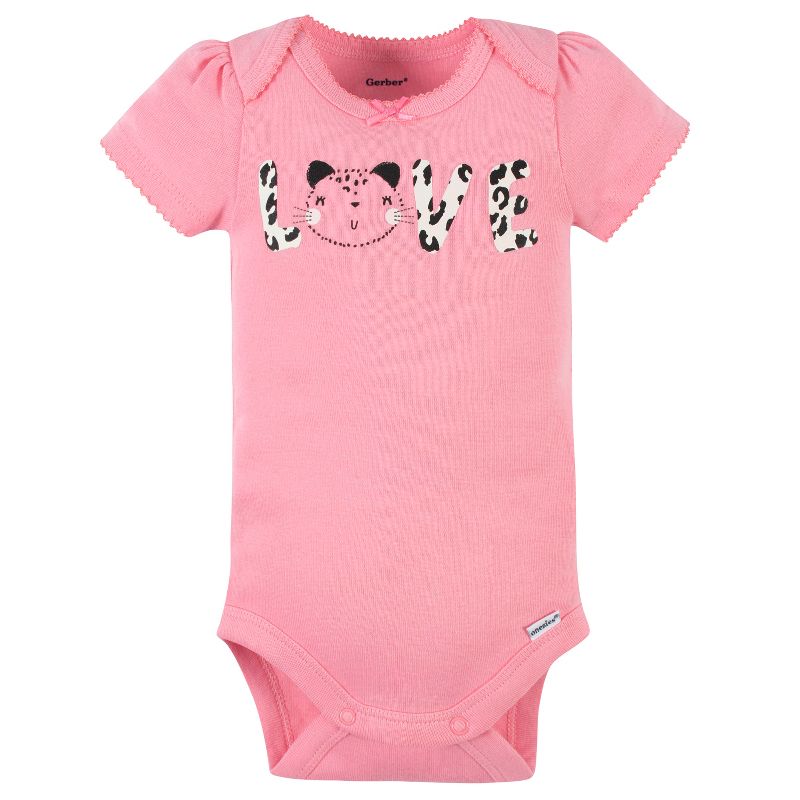 Gerber Baby Girls' Short Sleeve Onesies Bodysuits, 8-pack, Leopard, Newborn