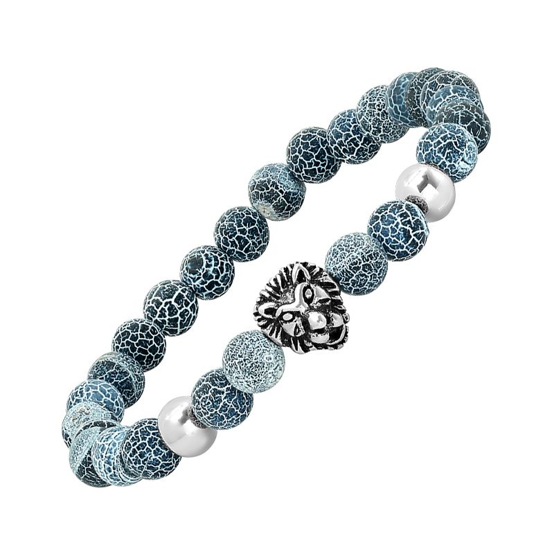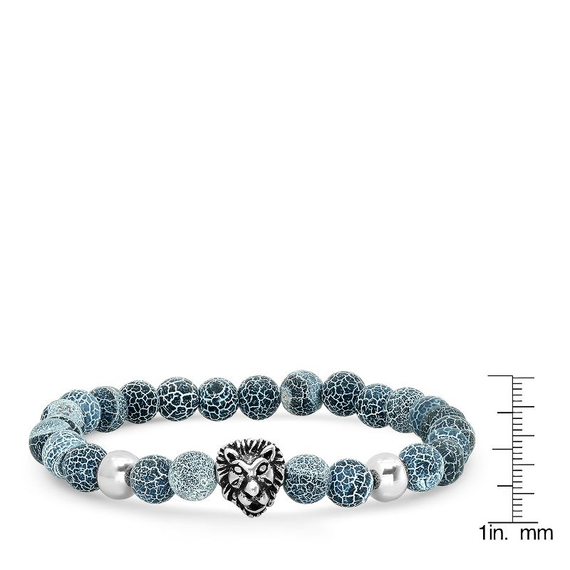 Steeltime Men's gray agate and stainless steel lion head beaded bracelet