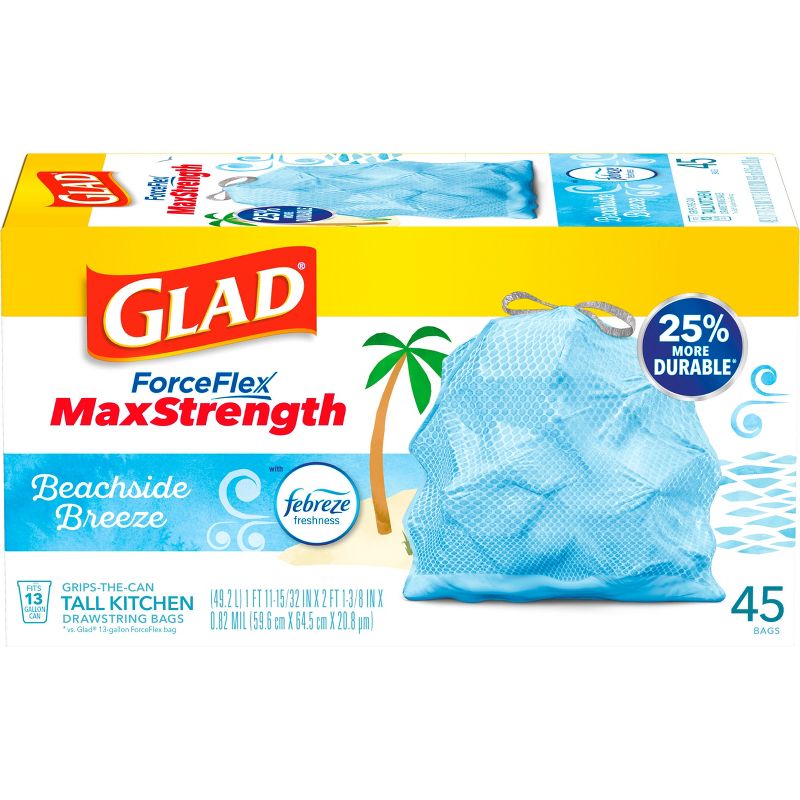 Glad ForceFlex MaxStrength Tall Kitchen Drawstring Trash Bags - Febreze Beachside Breeze - 13gal /45ct