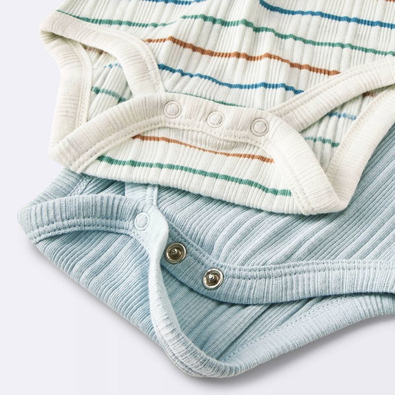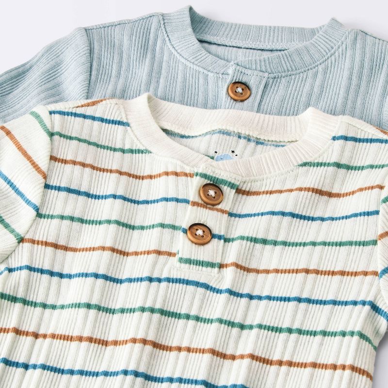 Baby Boys' 2pk Striped Short Sleeve Ribbed Bodysuit - Cloud Island™ Cream 12M