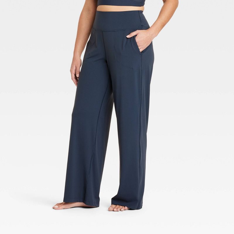Women's Everyday Soft High-Rise Wide Leg Pants - All In Motion™ Navy Blue XXL: Moisture Wicking, UPF 50+