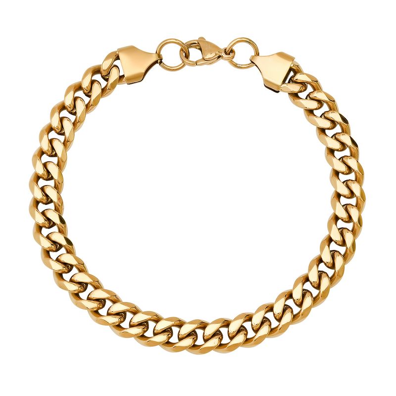 Steeltime Men's 18k gold plated stainless steel cuban link chain bracelet. Color Options: Silver, Gold, Black