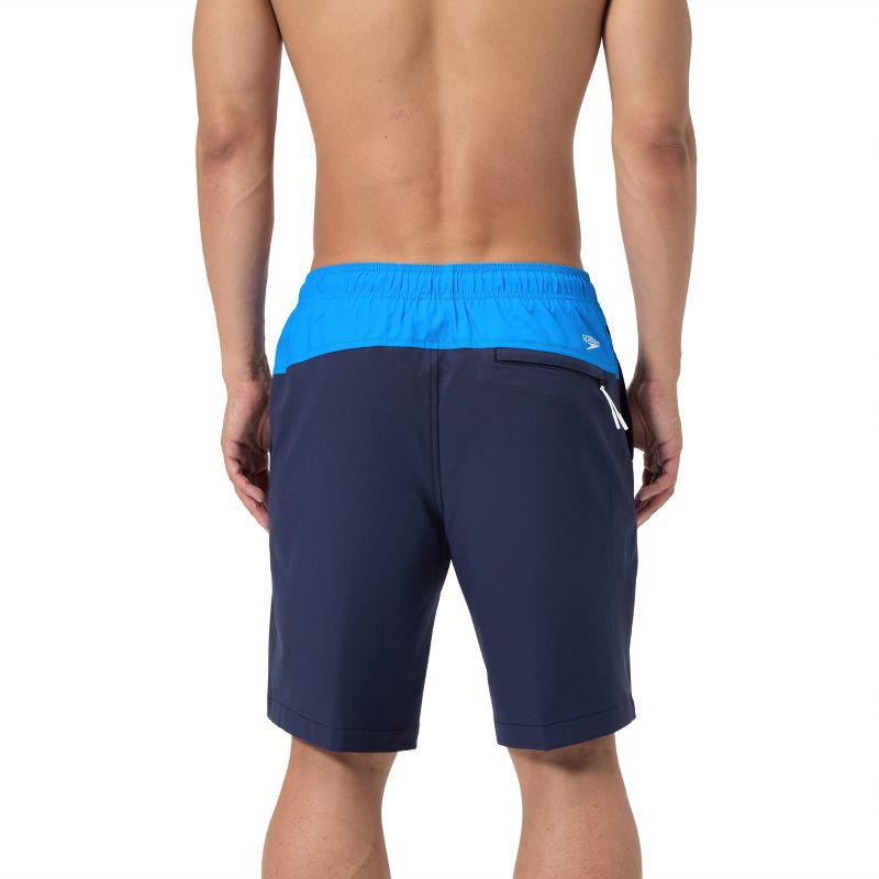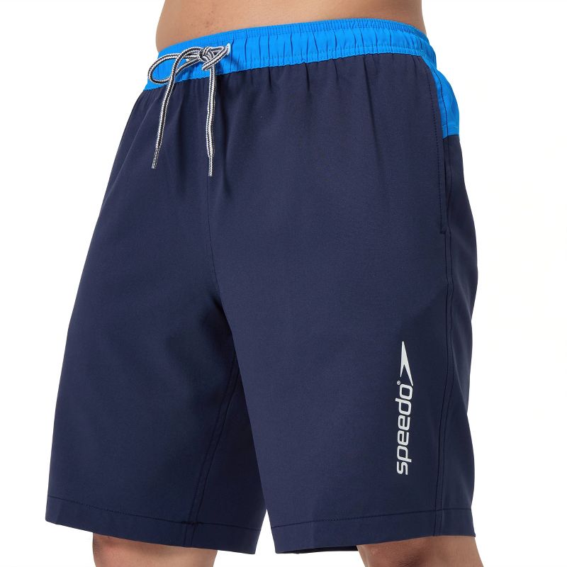 Men's 9" Speedo Marina Swim Shorts - Sea Blue L: Mesh Liner, UPF 50+, Zippered Pocket