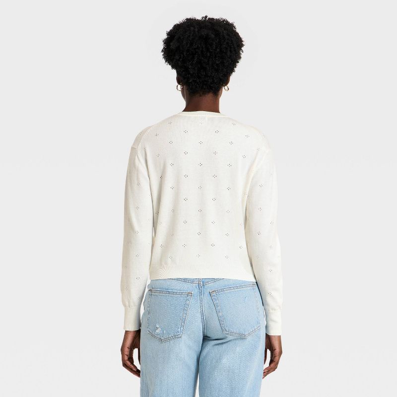 Women's Pointelle Button-Down Cardigan - A New Day™ Cream M