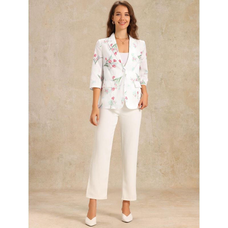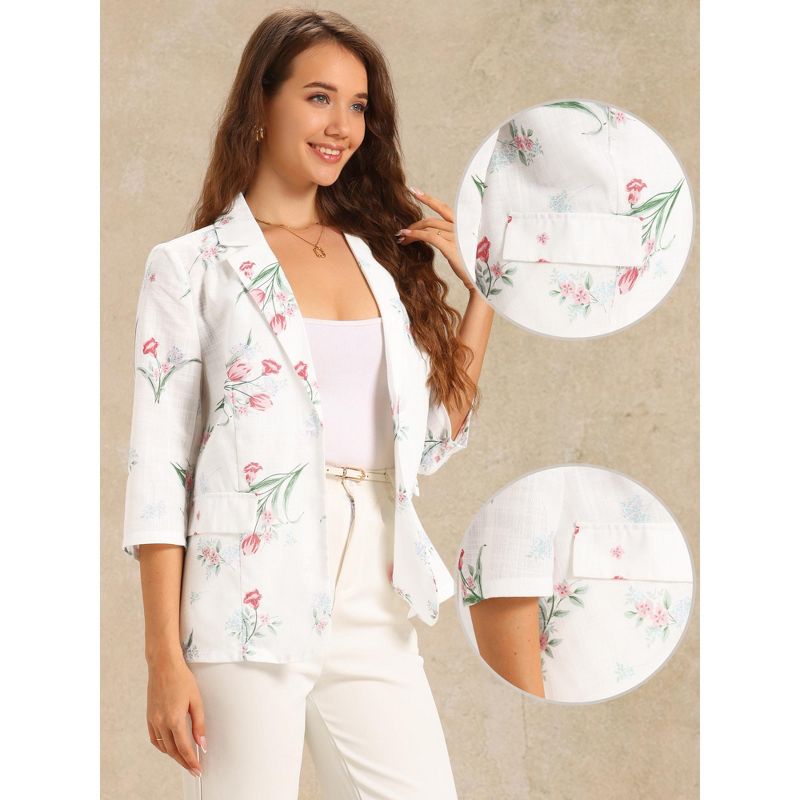 INSPIRE CHIC Women's Floral 3/4 Sleeve Notch Lapel Lightweight Casual Blazer Jacket White Small