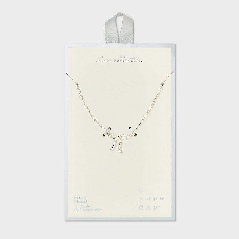 Silver Plated Bow Necklace - A New Day™ Silver