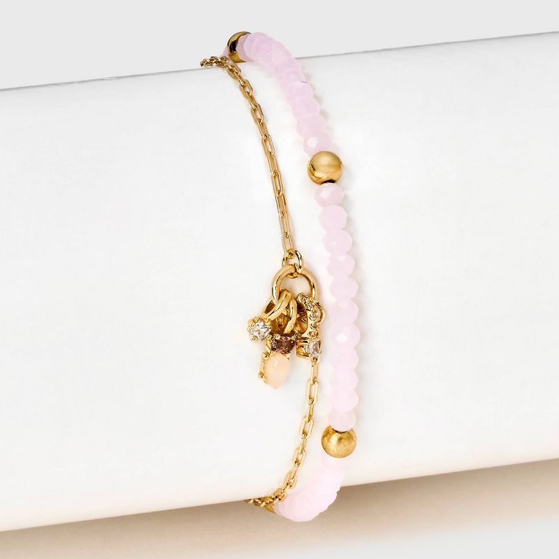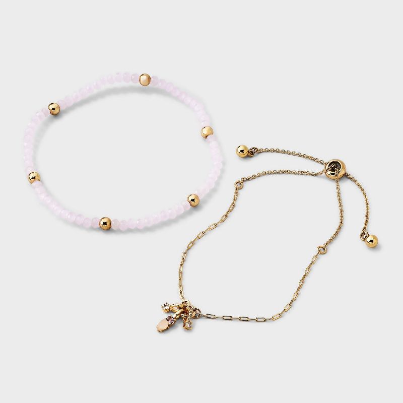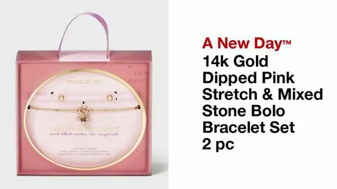14k Gold Dipped Pink Stretch & Mixed Stone Bolo Bracelet Set 2 pc- A New Day™