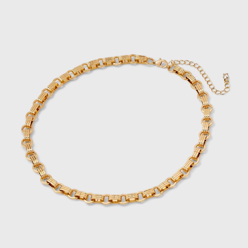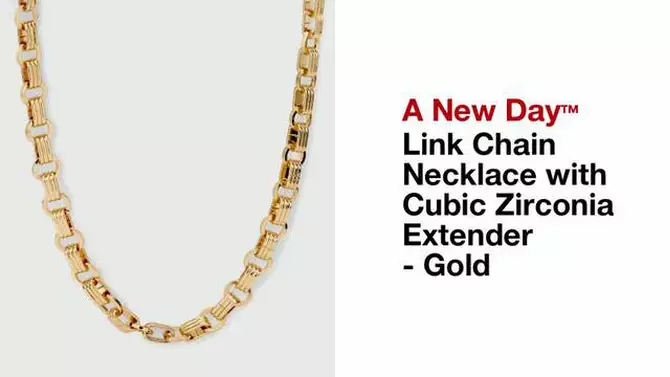 Link Chain Necklace with Cubic Zirconia Extender - A New Day™ Gold: 16" Cable Style, Lobster Claw Clasp, Recycled Steel