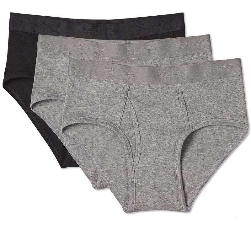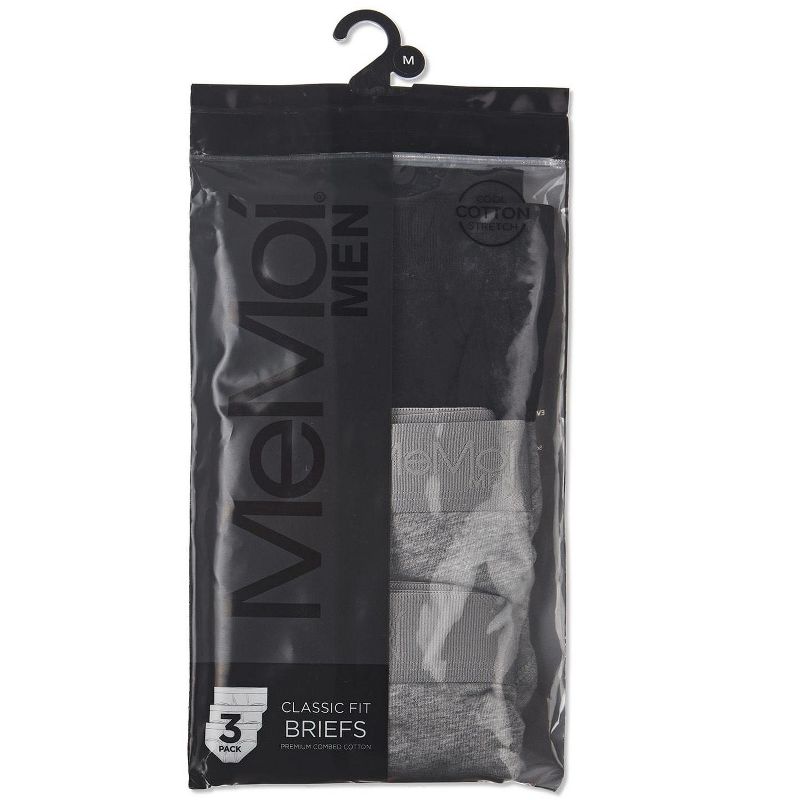 Memoi 3 Pair Men's Cool Cotton Stretch Classic-Fit Tag-Free Briefs Black-Gray-Gray XL