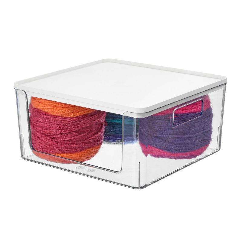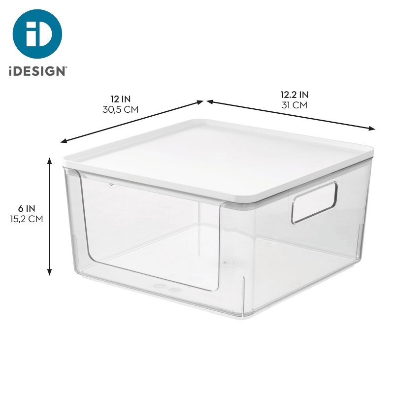 Rosanna Pansino x iDesign Recycled Plastic Open Front Kitchen Storage Bin with Lid, Clear Bin/Marshmallow Lid, 12" x 12" x 6"