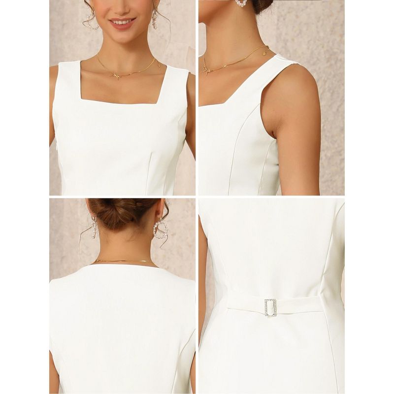 INSPIRE CHIC Women's Sleeveless Square Neck Adjustable Belted Elegant A-Line Mini Dresses Large White
