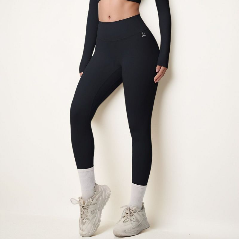Anna-Kaci Active Women's High Waist Seamless Full-Length Leggings with Compression Fit Stretch Fabric and Minimal Logo Detail - Black, Small