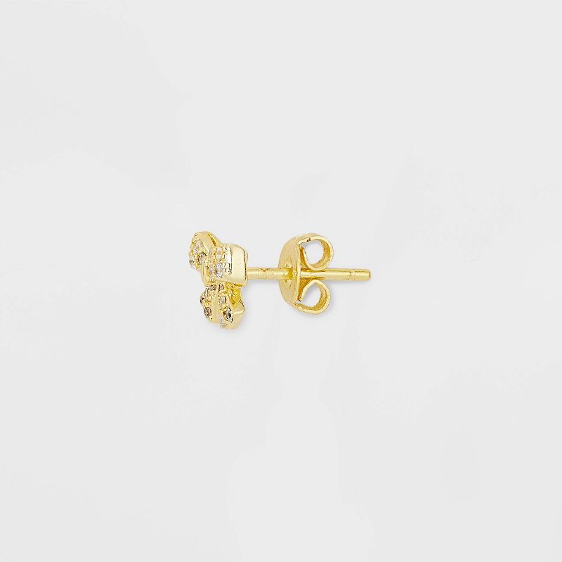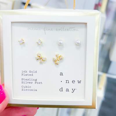 14k Gold Plated Simulated Pearl Round Cubic Zirconia Bow Stud Earring Set 3pc - A New Day™ Gold: Brass, Nickel-Free, Post Closure