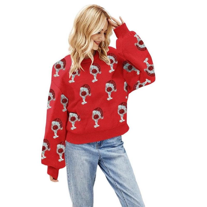 Coolmee Ugly Christmas Sweaters for Women Cute Funny Wintertime Holiday Parties Knitted Pullover Red 1XL