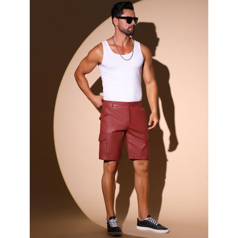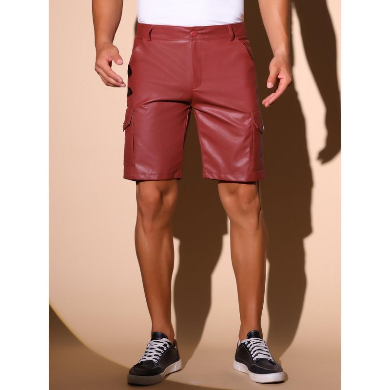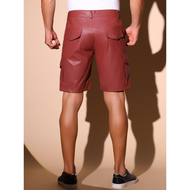 INSPIRE CHIC Men's Retro Cargo Pockets Party Biker Faux Leather Shorts Red 30