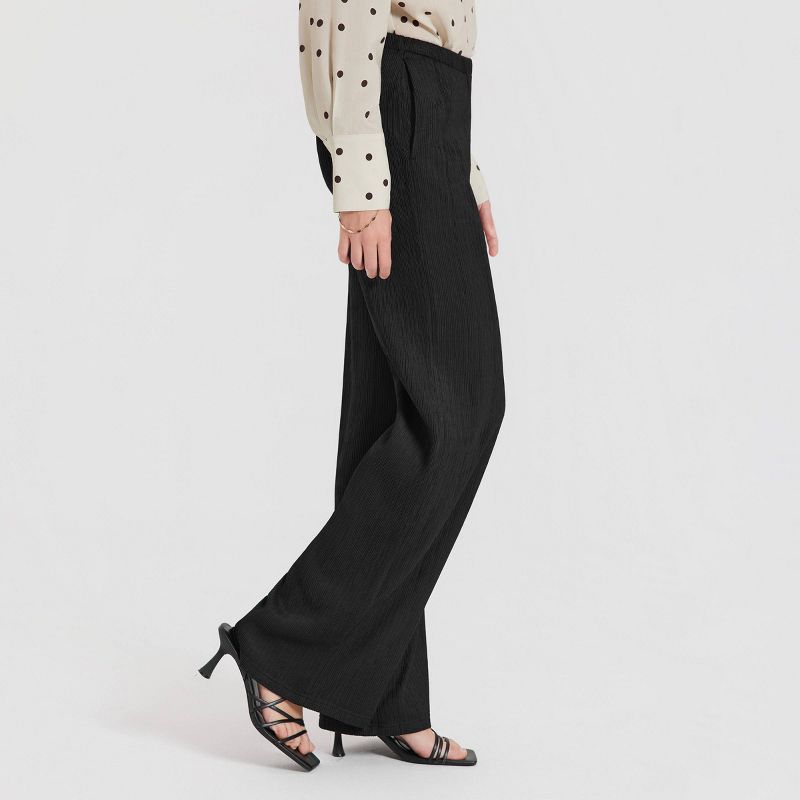 Women's High-Rise Textured Pull-On Pants - A New Day™ Black L