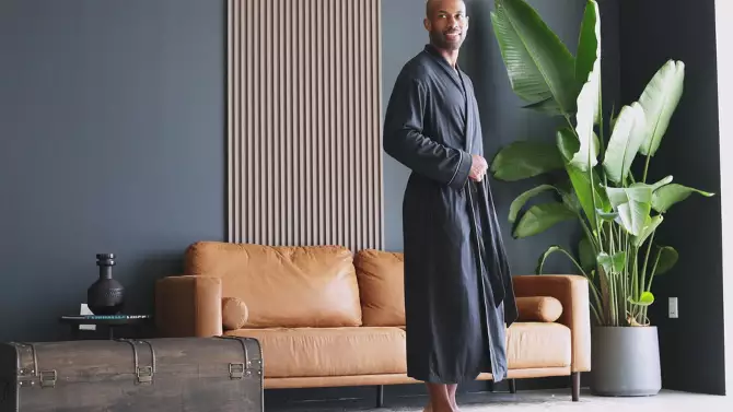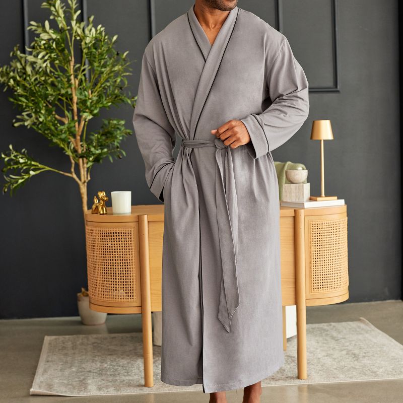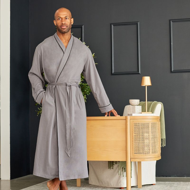 ADR Men's Robes, Mens Bathrobes Lightweight, Mens Robes with Pockets, Soft Cotton Knit Robe for Men Steel Gray Large