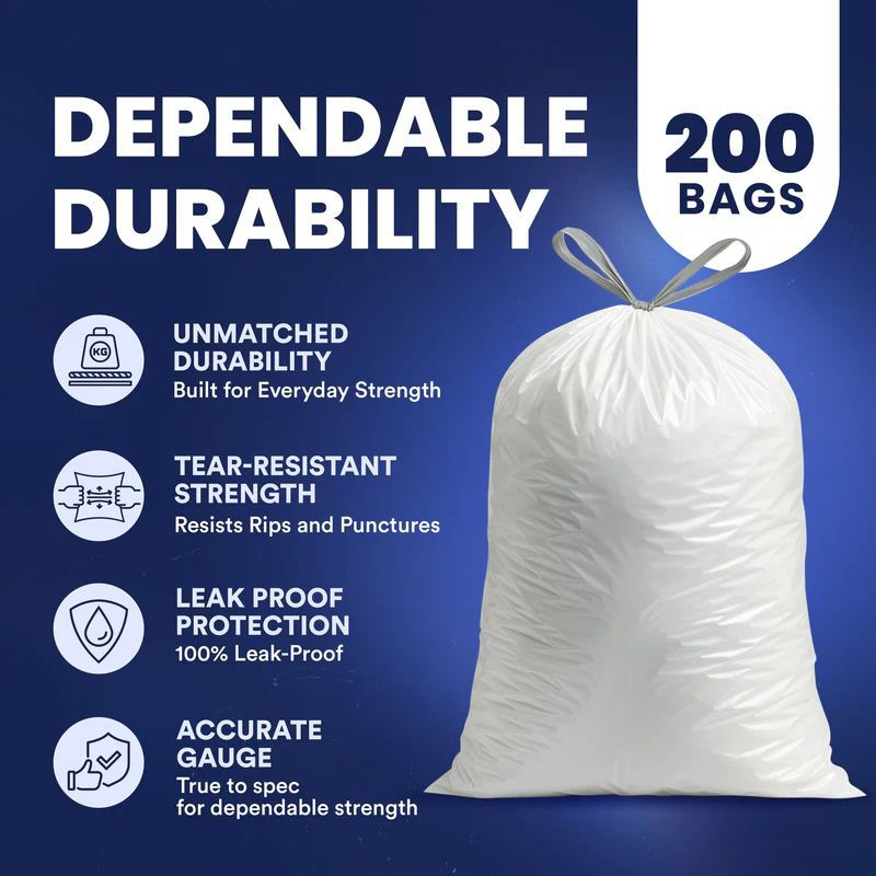 Plasticplace Drawstring Trash Bags, 4 Gallon, White (200 Count)