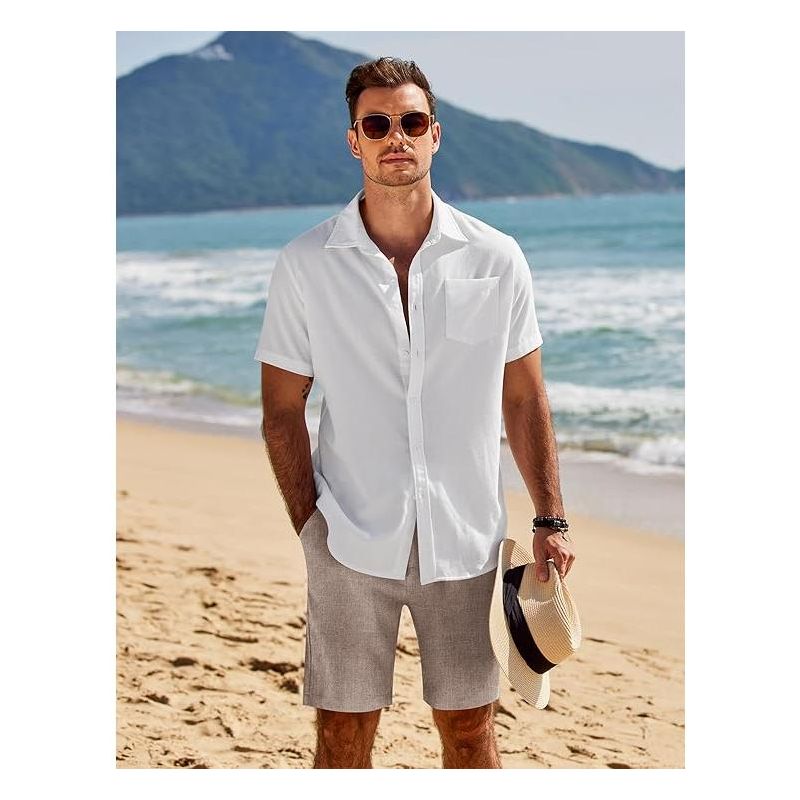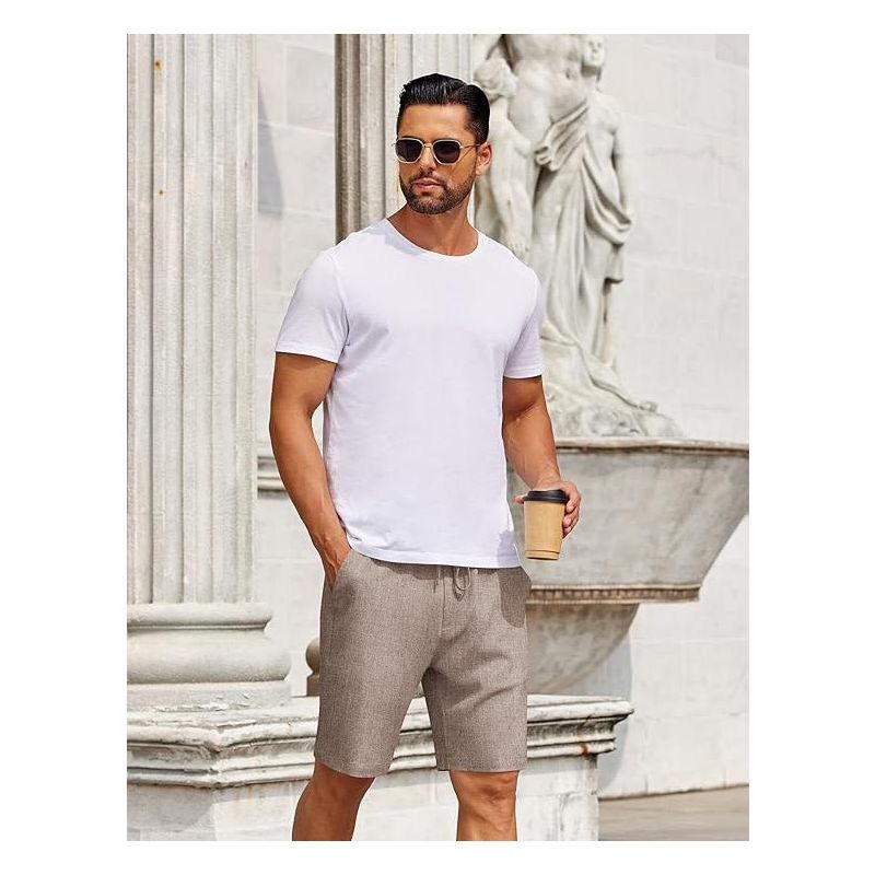 COOFANDY Mens Casual Shorts Elastic Waist Drawstring Shorts Summer Beach Linen Shorts Khaki M