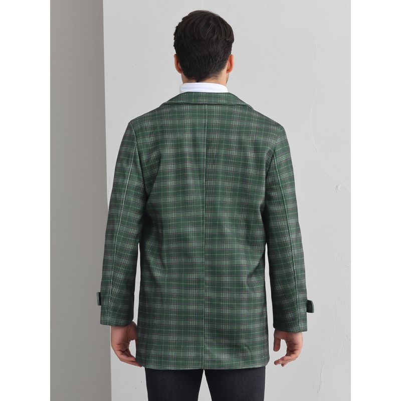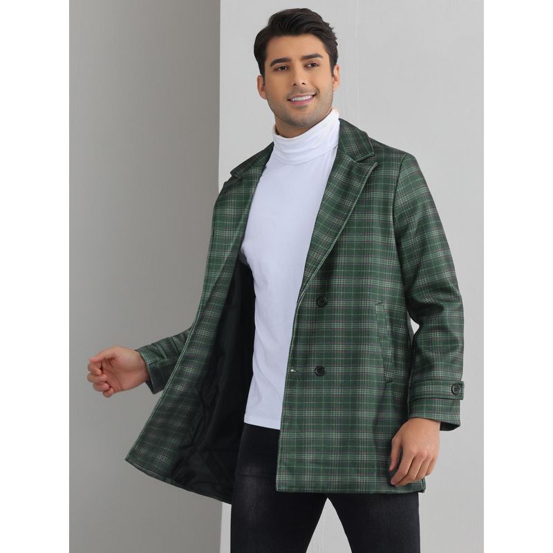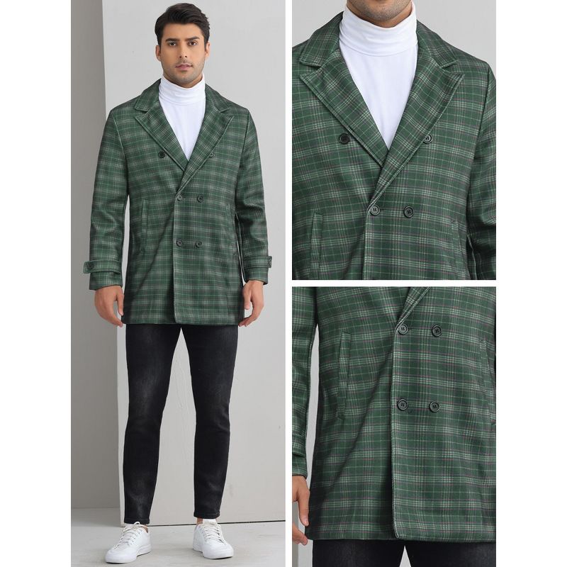 Lars Amadeus Men's Plaid Notch Collar Double Breasted Winter Long Coat Gray X Large