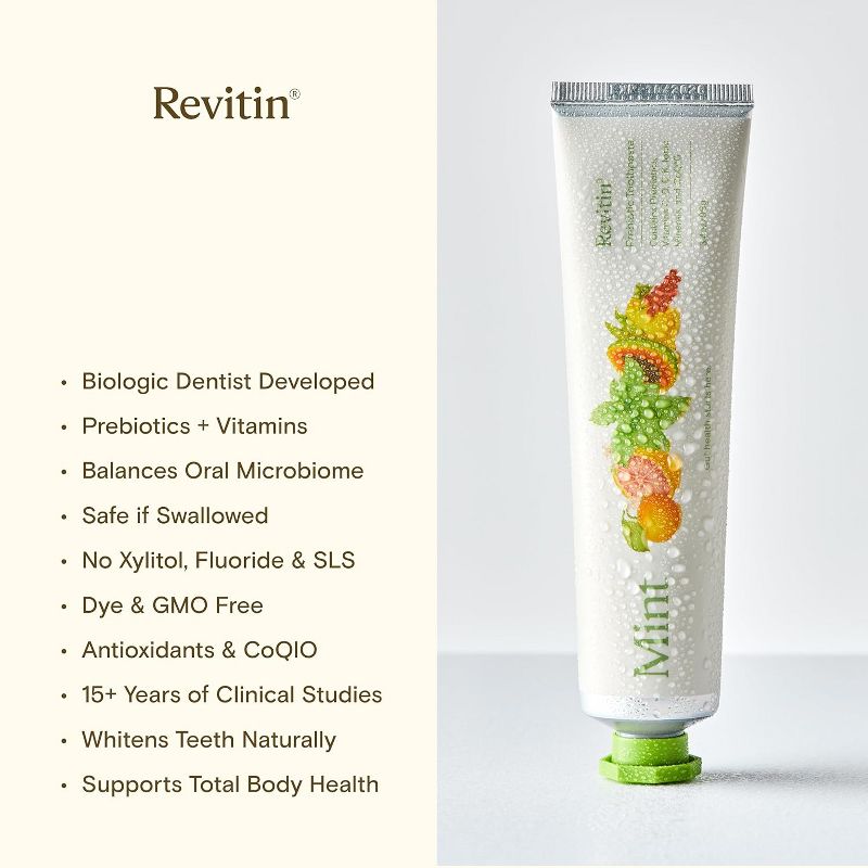 Fluoride-Free Prebiotic Toothpaste – Refreshing Mint Gel for Fresh Breath & Oral Balance – 3.4 oz by Revitin