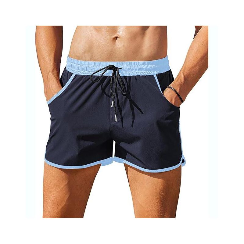 COOFANDY Men's Swim Trunks Quick Dry Swimsuit Color Block Board Short Bathing Suit Swimwear with Mesh Liner Navy Blue L