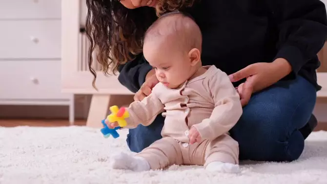 Itzy Ritzy Teensy Tubes Rattle and Teether - Blue and Red