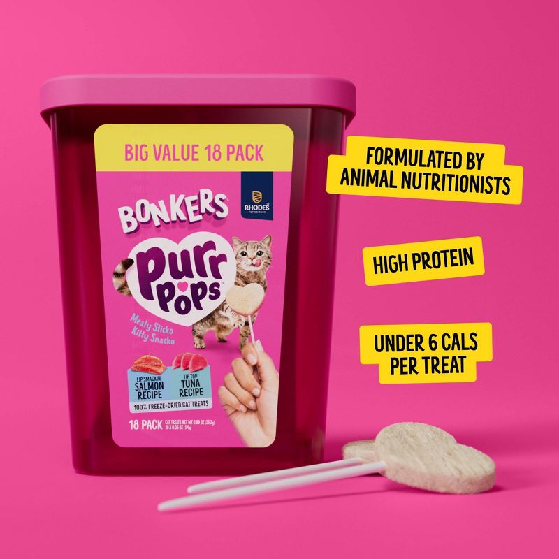 Bonkers Purrpops Freeze-Dried Tuna & Salmon Flavored Lollipop Cat Treats - 3.6oz/18ct