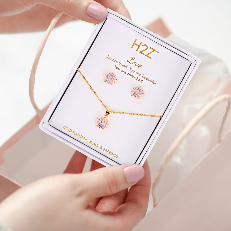 Pavilion Gift Company - Love Floral Burst - Rose Zircon - 16.5"-18.5" Inspirational 18K Gold Plated Gift Set - Necklaces