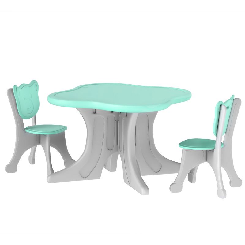 Qaba Kids Table and Chairs Set, 3 Piece Toddler Table and Chair Set for 3-6 Years Old, Light Blue