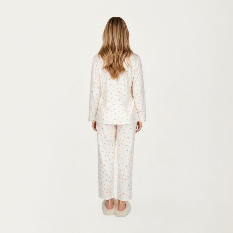 Anna-Kaci Lounge Women's 2-Piece Set Polka Dot Print Button-Up Long Sleeve Pajama Top and Matching Pants - Medium, Light Beige