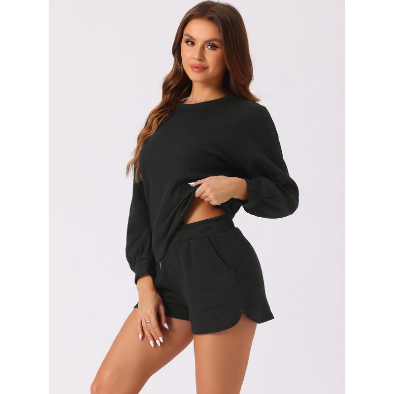 cheibear Women's Long Sleeve Waffle Sweatsuit Set 2 Pcs Black XX-Large