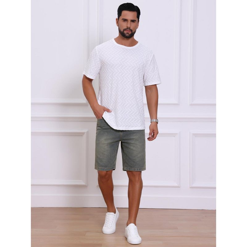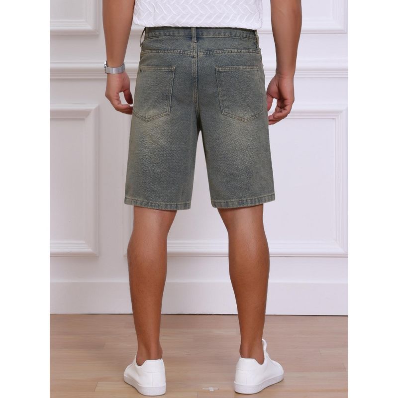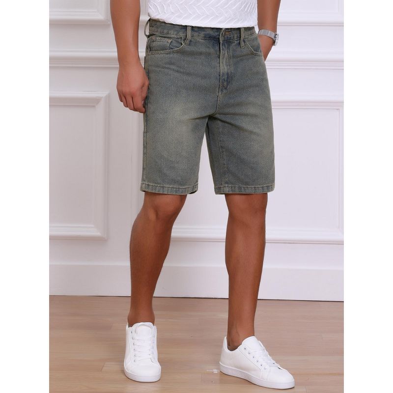 INSPIRE CHIC Men's Textured Denim Above Knee Zipper Closure Casual Jean Short 36 Retro Blue