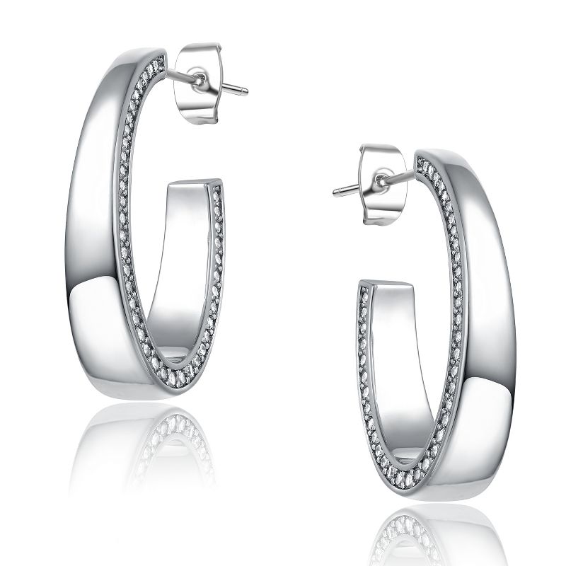 Guili Tapered Glow White Gold Plated Sterling Silver ? C-Hoop Earrings with Cubic Zirconia for a Sleek, Contemporary, and Bold Appeal