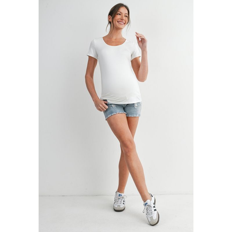 Hello Miz Women's Fitted Scoop Neck Short Sleeve Maternity T-Shirt - White - X Large