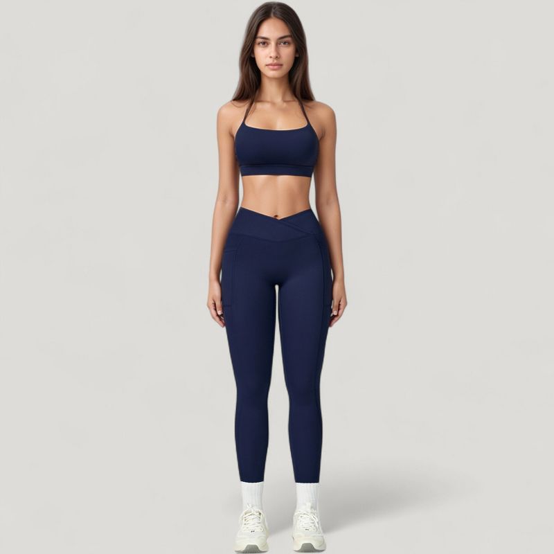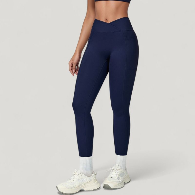 Anna-Kaci Active Women's High Waist Crossover Lounge Leggings with Full Length Slim Fit and Flattering Waistband - Medium, Navy