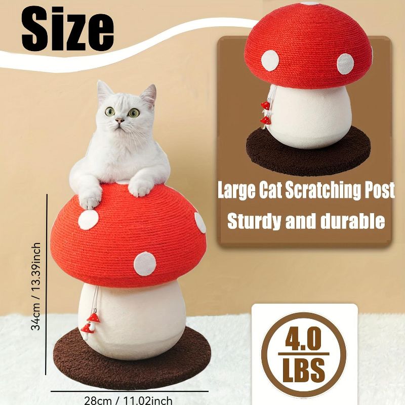 Mushroom Cat Climbing Frame, Sisal Cat Climbing Post with Fluffy Base, Cat Scratching Claw toy, Cat tree, Wear-resistant Cat Scratching Ball